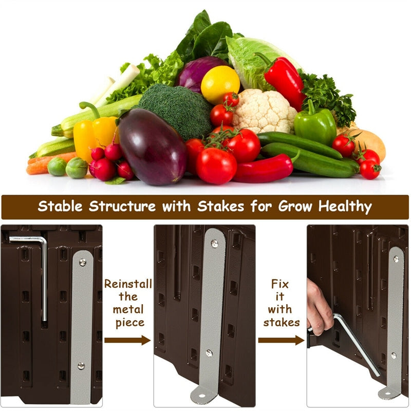 Stable Frame with Ground Nails:?The elevated plant bed comes with 4 ground stakes to keep the garden bed more stable. With these ground stakes, you can firmly?fix?the planting box to the ground and not?worry?about being blown away by the wind. In addition, 4 corner brackets are prepared to keep the panels in a suitable place.