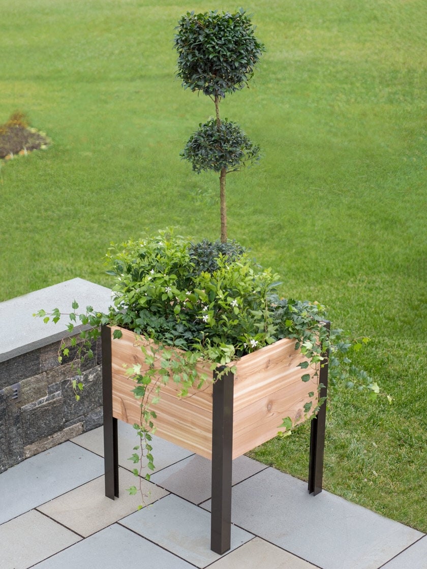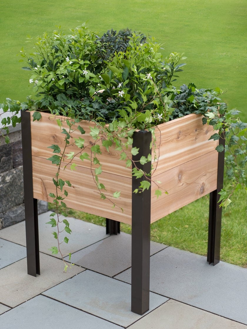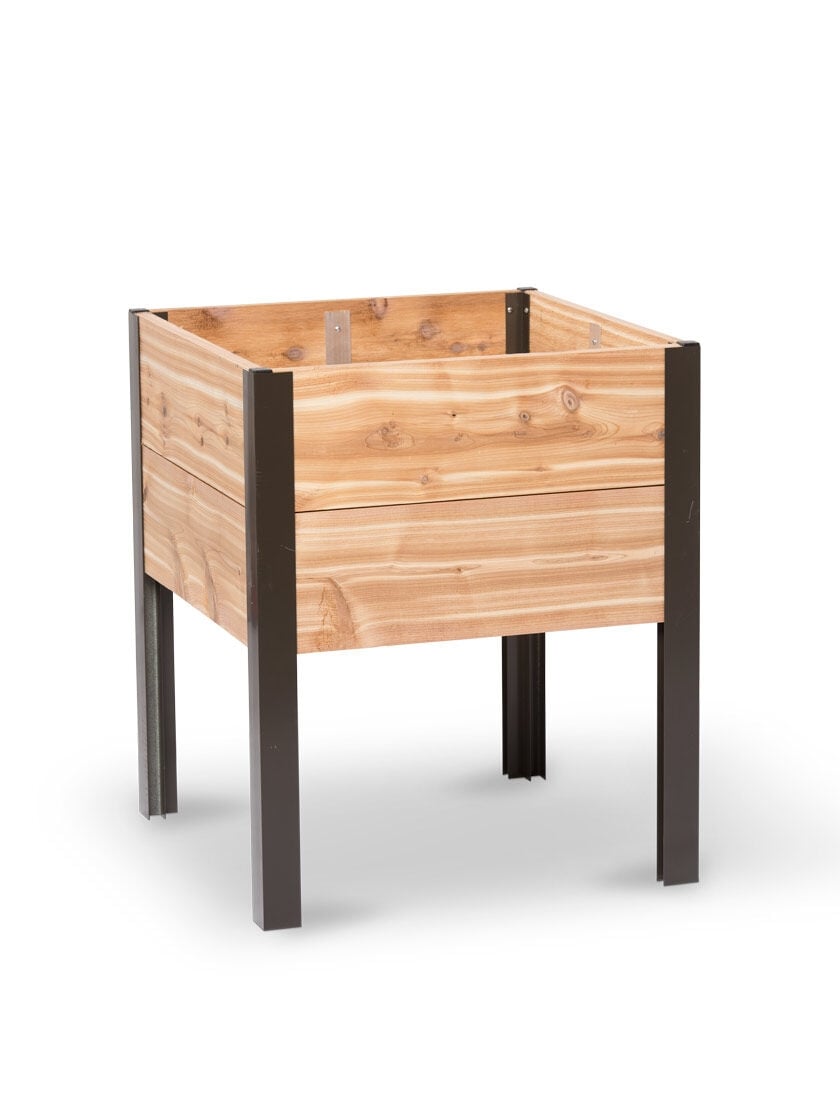 The cornerstone of our modular box-and-bench system, this 2' x 2' cedar planter box features the same lifetime aluminum legs as our other signature elevated raised beds. Cedar sides and bottom are rot- and pest-resistant and will weather to a beautiful silvery grey. On its own, it's perfect for a kitchen herb garden. Or try multiples for different plant types and to create a lovely seating arrangement on your deck or patio. Bench component sold separately.