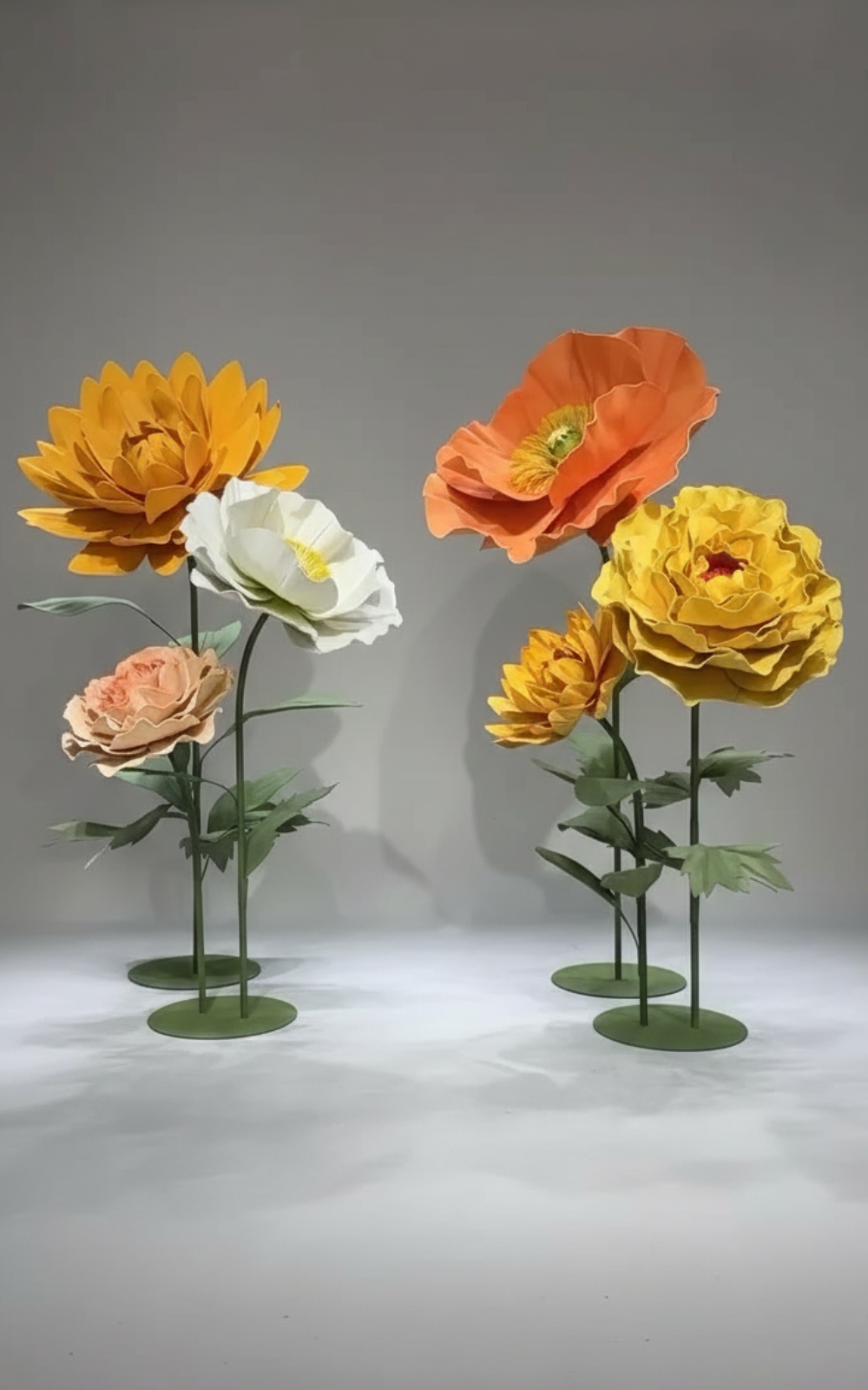 This set of yellow and orange paper flowers features vibrant colors and a simple design, making it ideal for commercial displays, window displays, or photo backdrops. It quickly enhances the brightness and visual appeal of any space.~~~~~~~~~~~~~~~~~~~~~~~~~~~~~~