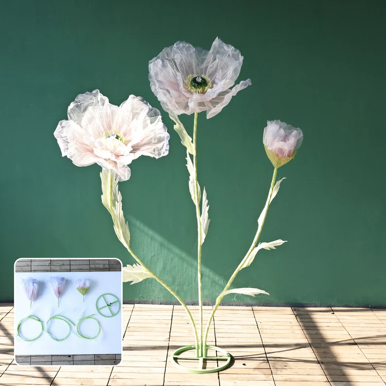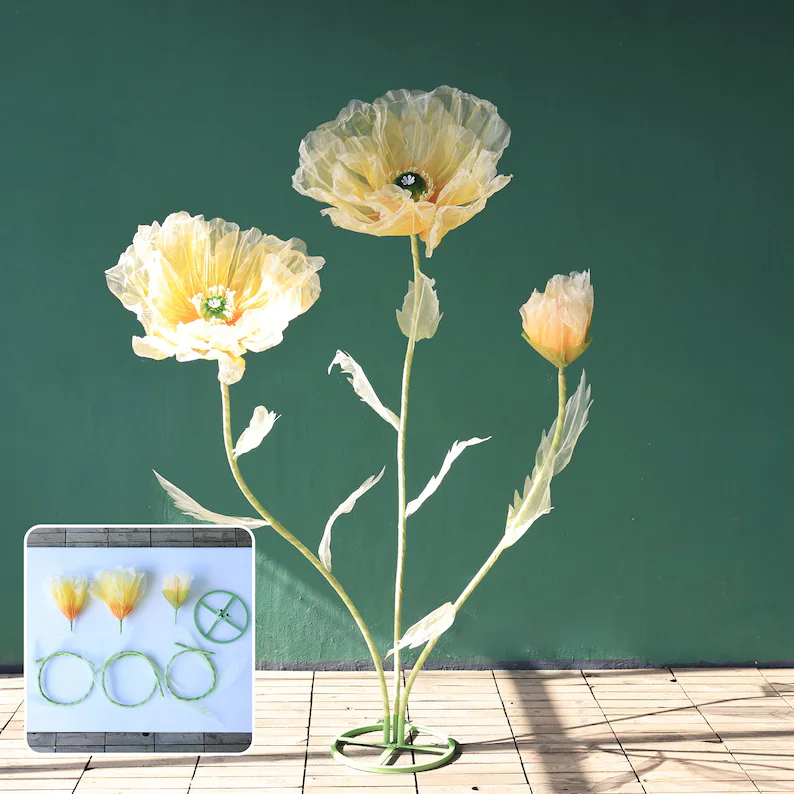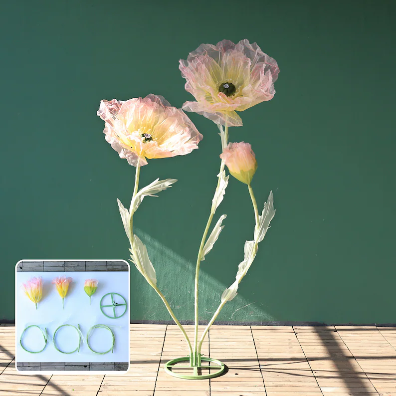 Our artificial flower has a beautiful shape and excellent workmanship. It can be disassembled at will for easy transportation. One person can complete the assembly. The height of the liftable base can be adjusted arbitrarily. The flower stem of the aluminum-plastic tube can be bent into the desired shape,outdoor waterproof.