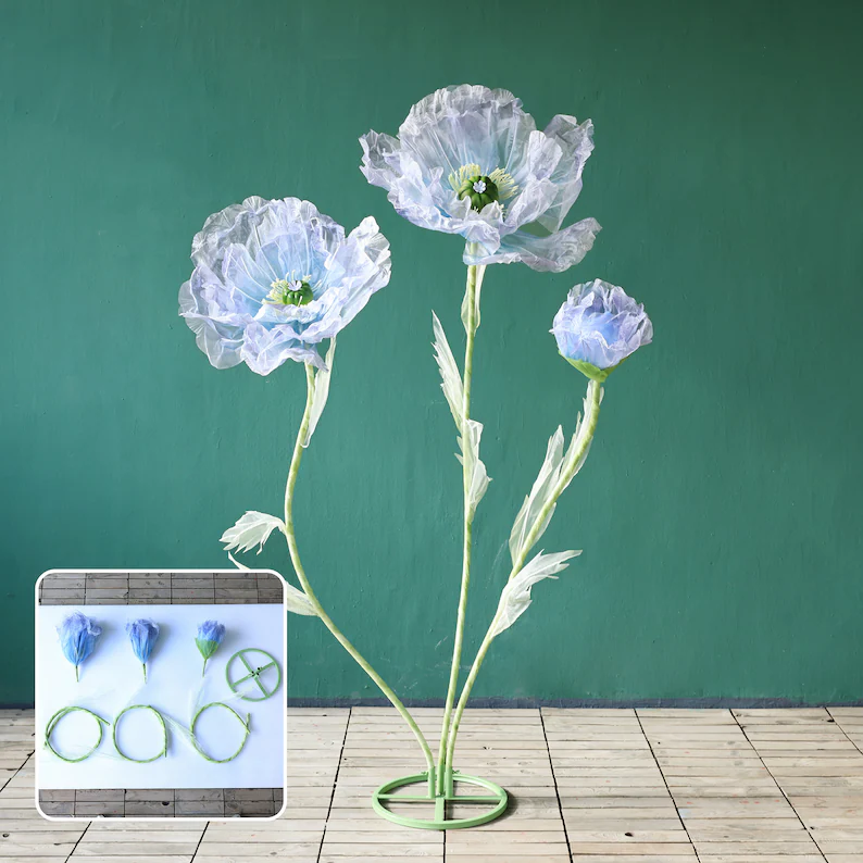 Material: Premium Crepe Paper & High-grade Cardstock on Metal Stem