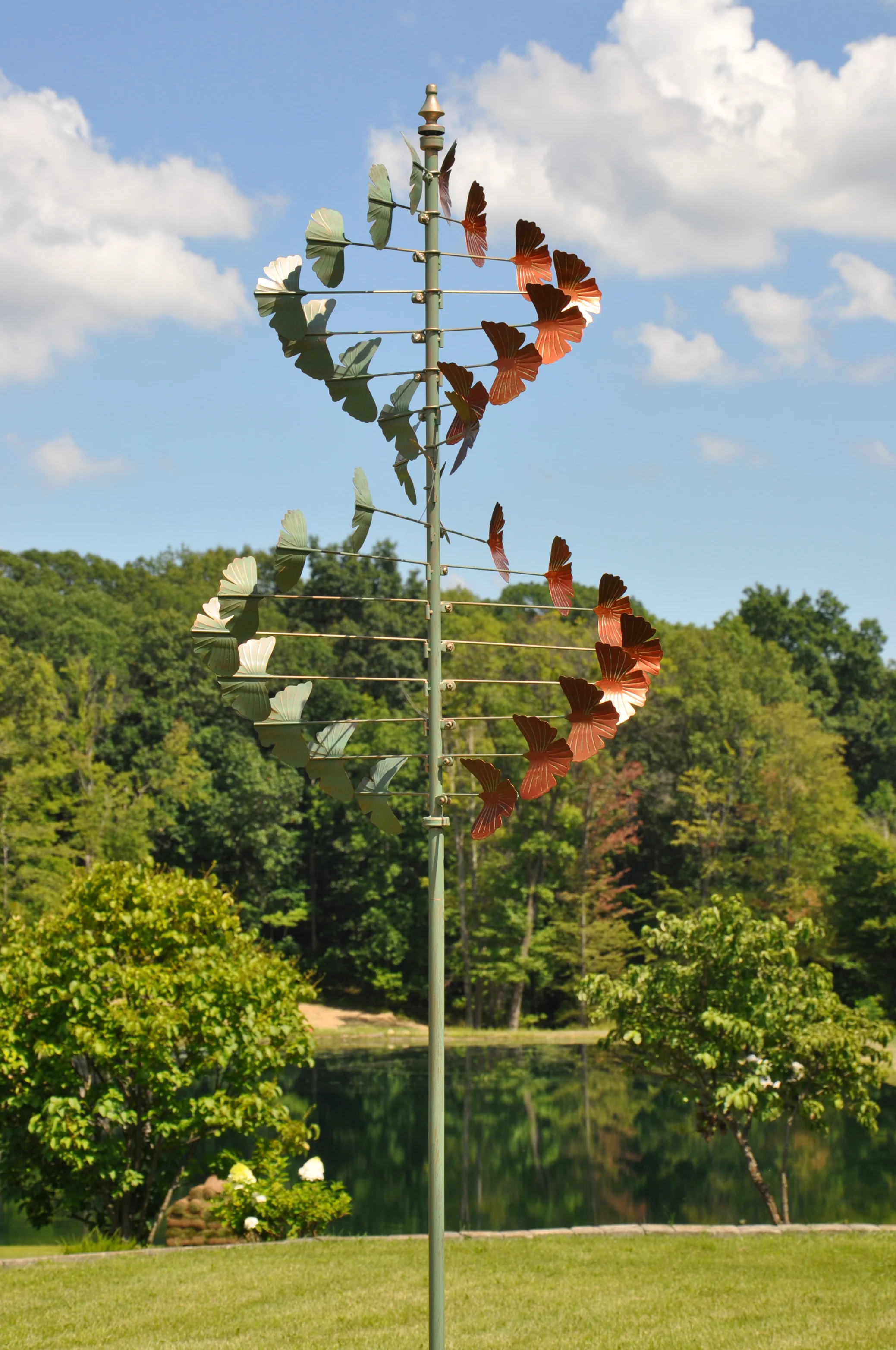 As the wind spins this metal art, you can show off your creativity and create a beautiful display in your yard.