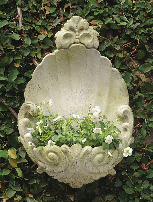 With the appearance of aged stone, our wall planter is crafted from a mixture of sand and stones reinforced with fiberglass. Lightweight yet durable, this planter may be left outdoors indefinitely. Variations in color will occur. A sawtooth hanger makes mounting easy.