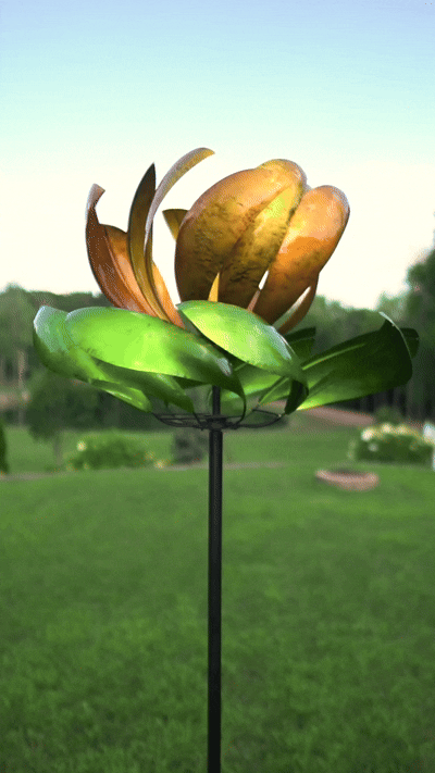 2. The dual rotors rotate in opposite directions and rotate 360 degrees. Glittering in the sunlight, the Dynamic Metal Garden Spinner brings color and vibrancy to your home.